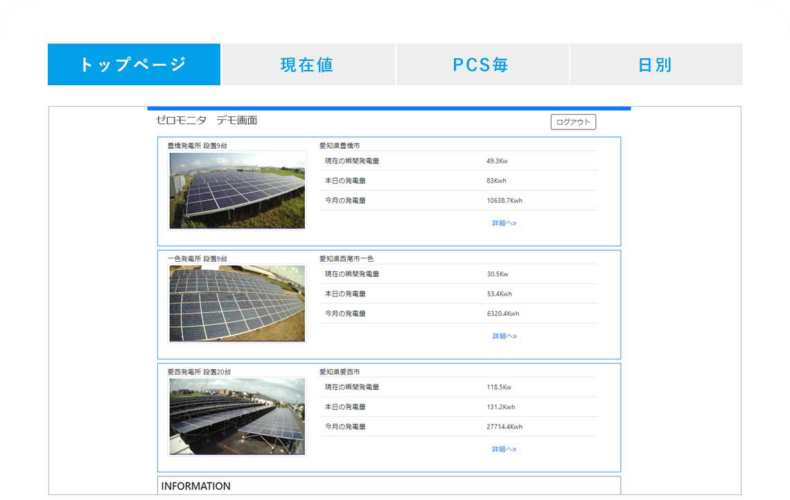 開発から5年、2019年に商品化に成功し販売をスタートするに辺りシステム使用料を迷いましたが、発電所のオーナー様が導入しやすい、メンテナンス会社の弊社を知って頂く目的から使用料は無料での販売を決定し、そこから「ゼロモニタ」と製品名を決めて販売をスタートしました。まだまだ知名度は低いですが、太陽光発電所の遠隔監視システムの導入時に候補に入れて頂けましたら幸いです。